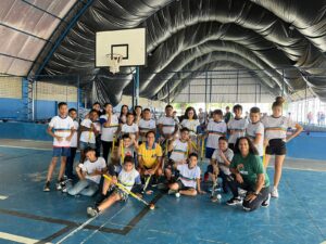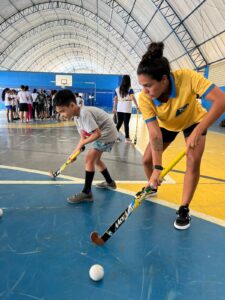 Cerca de 300 crianças das Escolas Municipais de Recife circularam no evento, que contou com a Clínica de Hóquei ministrada pela Instrutora da CBHG, Thaís Andrade.